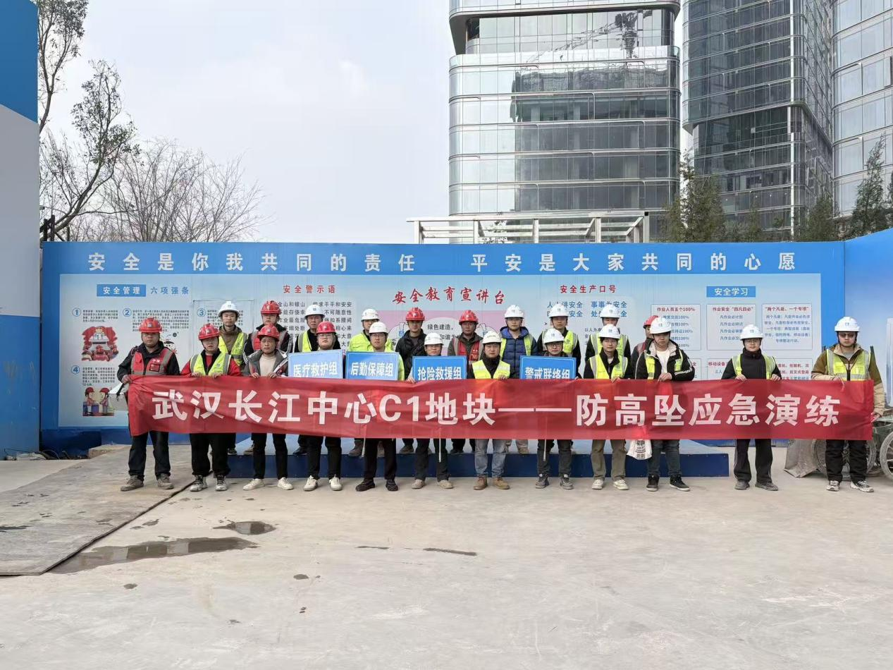 為進一步強化項目全體人員的防高墜安全意識,提升應對高空墜落事故的應急處置能力,3月5日,武漢長江中心C1地塊針對高空墜落突發事故開展模擬演練。